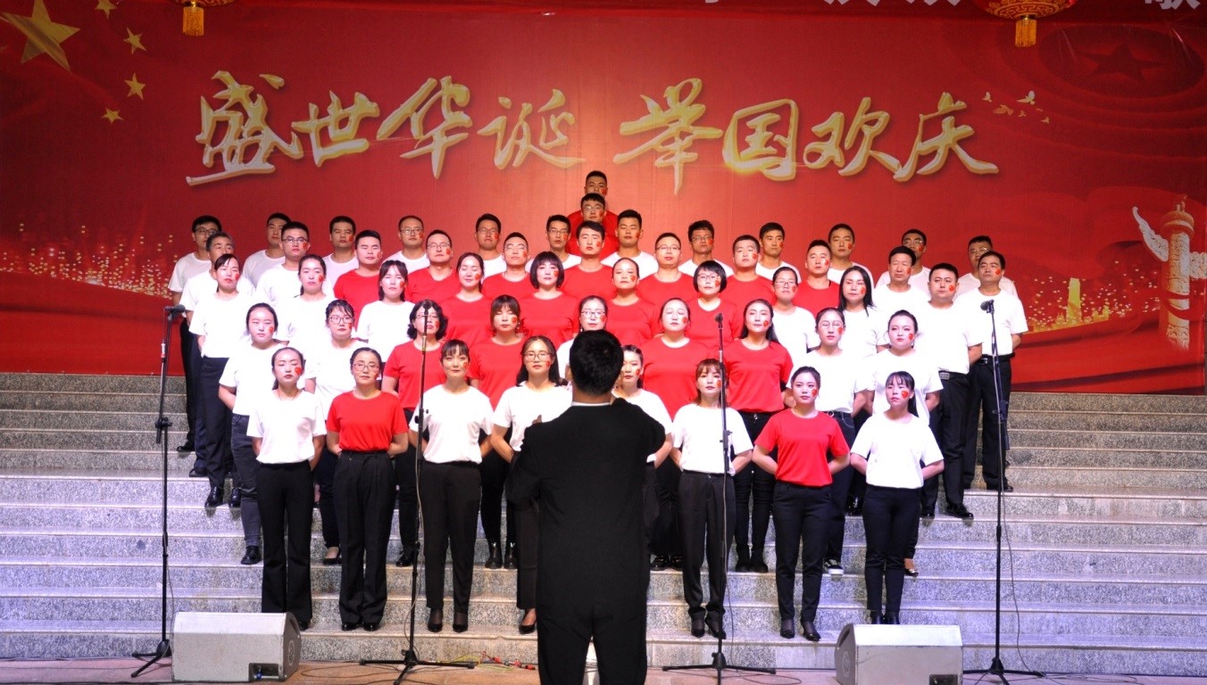 公司領(lǐng)導和演員們一同唱響《歌唱祖國》,祝福我們的民族日益強大,祝福我們的祖國繁榮富強!