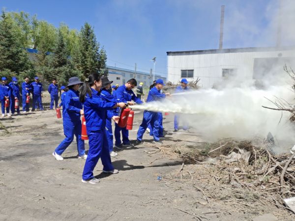 為增強(qiáng)安全消防員實(shí)戰(zhàn)本領(lǐng),培訓(xùn)結(jié)束后,參加培訓(xùn)的人員在后廠區(qū)空曠地帶舉行了滅火演練。在直觀、真實(shí)的火場環(huán)境中,演練人員嚴(yán)肅認(rèn)真、服從指揮,使用滅火器115具,消防水帶6條,嚴(yán)格按照教官培訓(xùn)的滅火器操作步驟和使用方法進(jìn)行實(shí)操滅火。