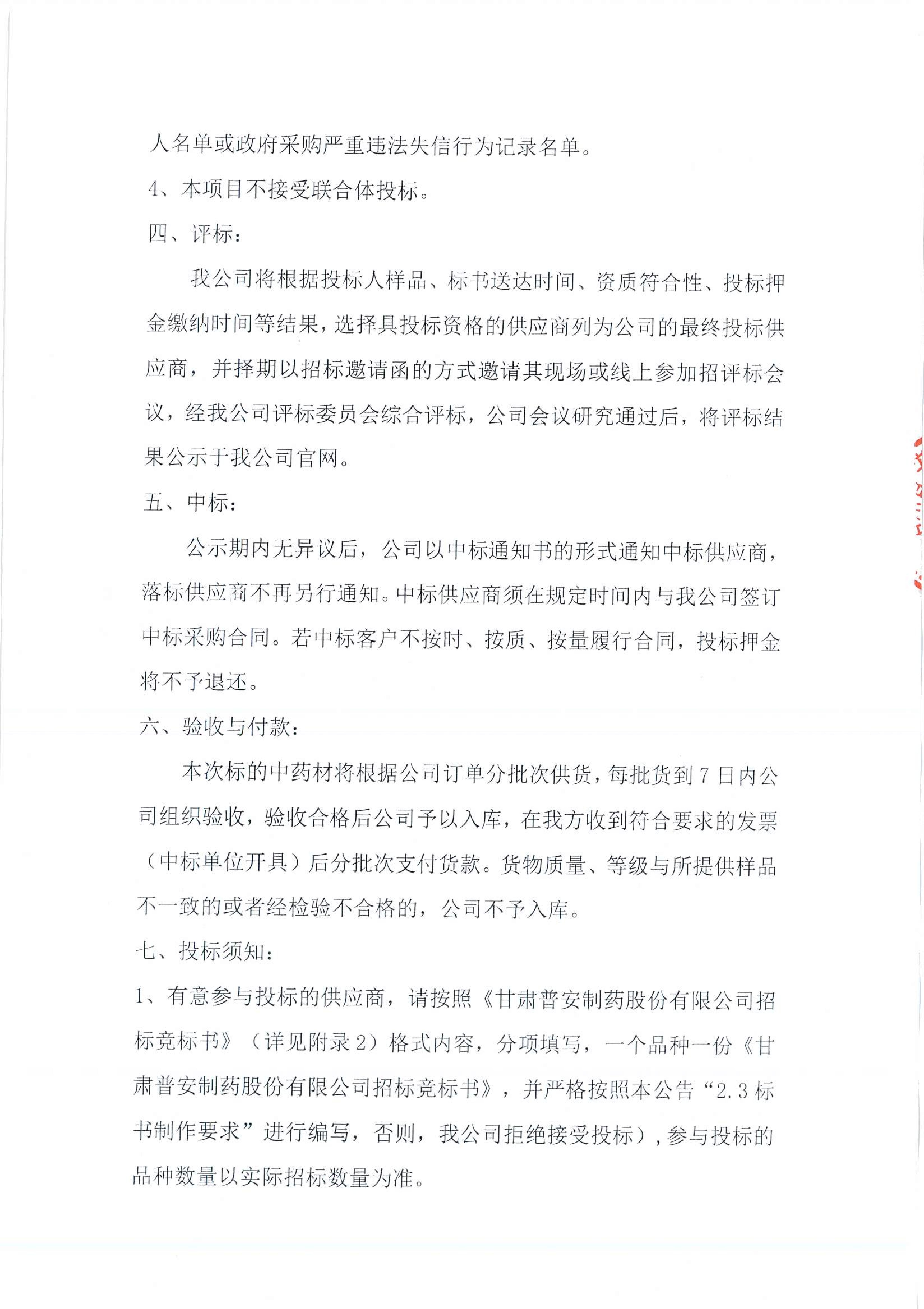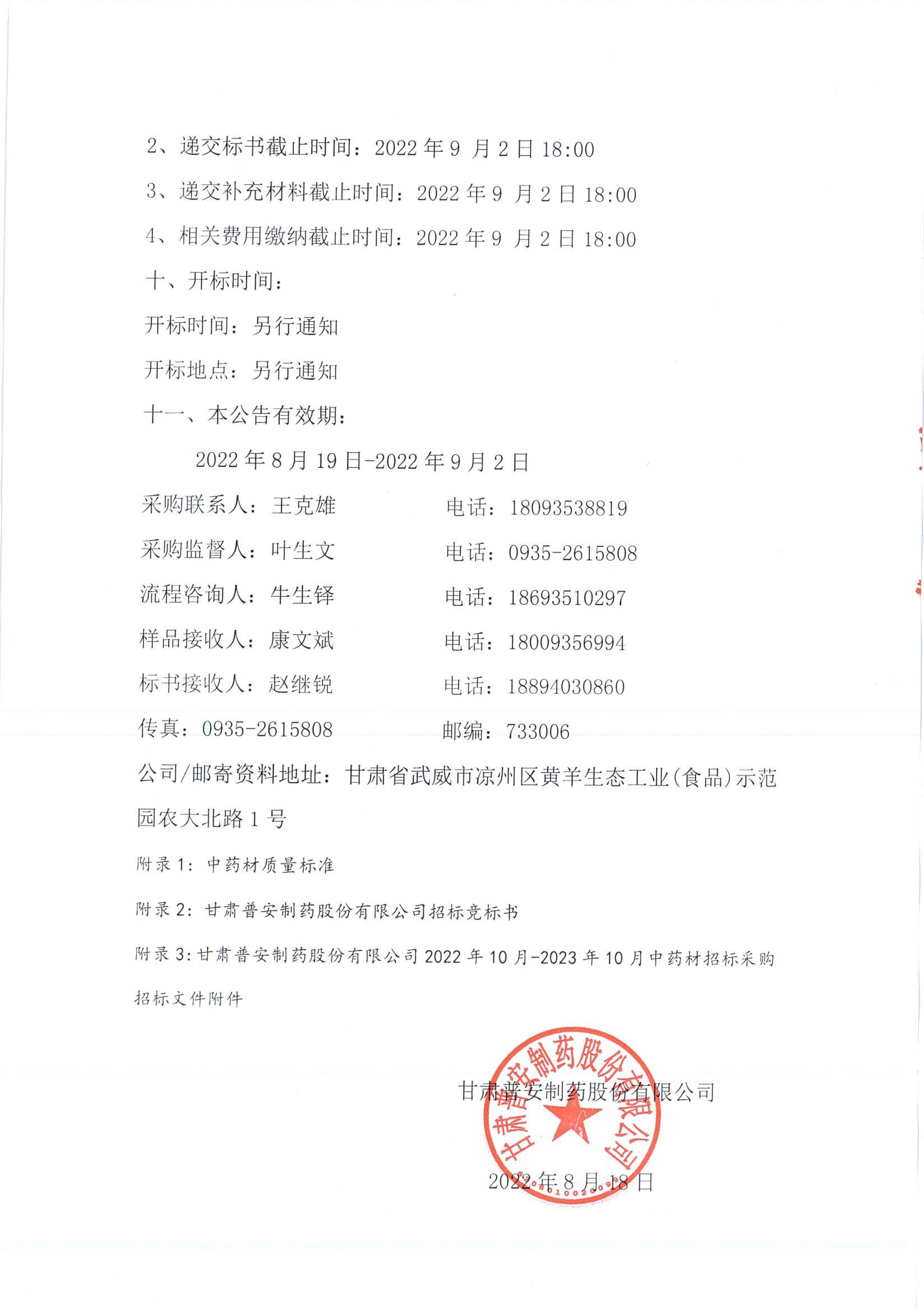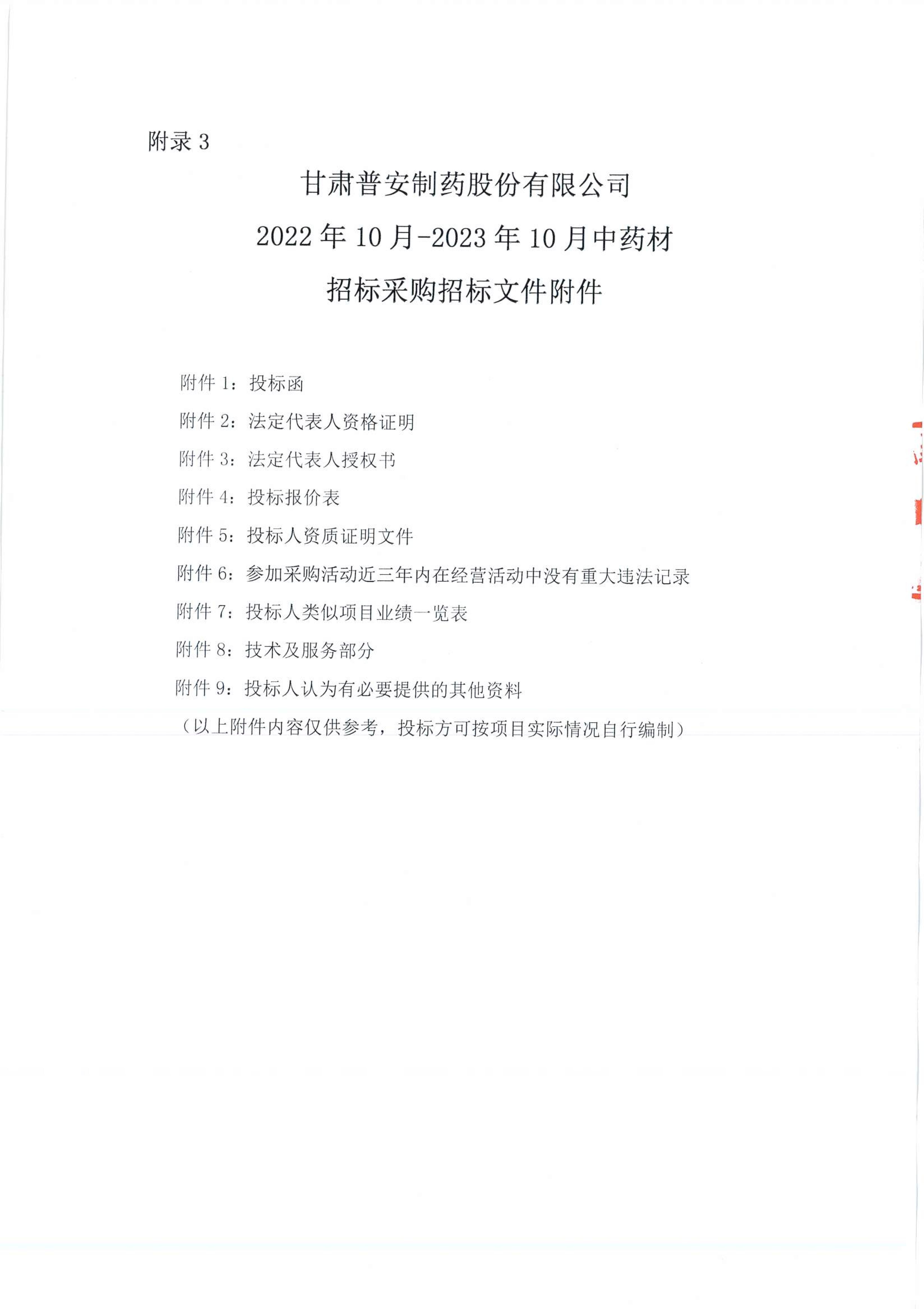 甘肅普安制藥股份有限公司2022年10月-2023年10月中藥材招標采購公告