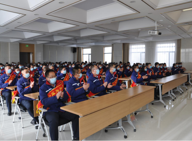 接著,公司領導宣讀了表彰決定并為受表彰個人及集體代表現場頒發了榮譽證書,在向受表彰個人和集體送上祝賀的同時,希望受表彰人員珍惜榮譽,謙虛謹慎、再接再厲,在新的起點上再創佳績;同時號召公司全體員工向優秀看齊,向先進學習,要破解在生產經營中存在的堵點難點痛點問題,理清公司高發展方向和思路,推動公司生產經營指標趕超發展。