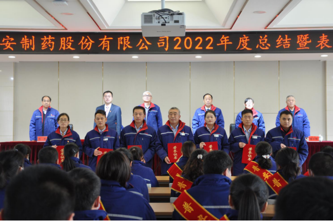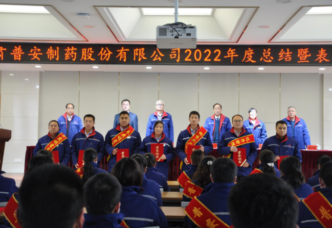2023年1月16日,普安制藥2022年度總結暨表彰大會在三樓會議室順利召開。會議對2022年度工作中涌現出來的32名先進個人、5名擴產保供先進個人、5名疫情防控先進個人、8個先進班組及集體、2名優秀管理者、1名優秀科技工作者、3名優秀黨員及優秀黨務工作者、7名十年奉獻獎獲得者、2名十五年奉獻獎、15個科技及管理創新項目進行了表彰。