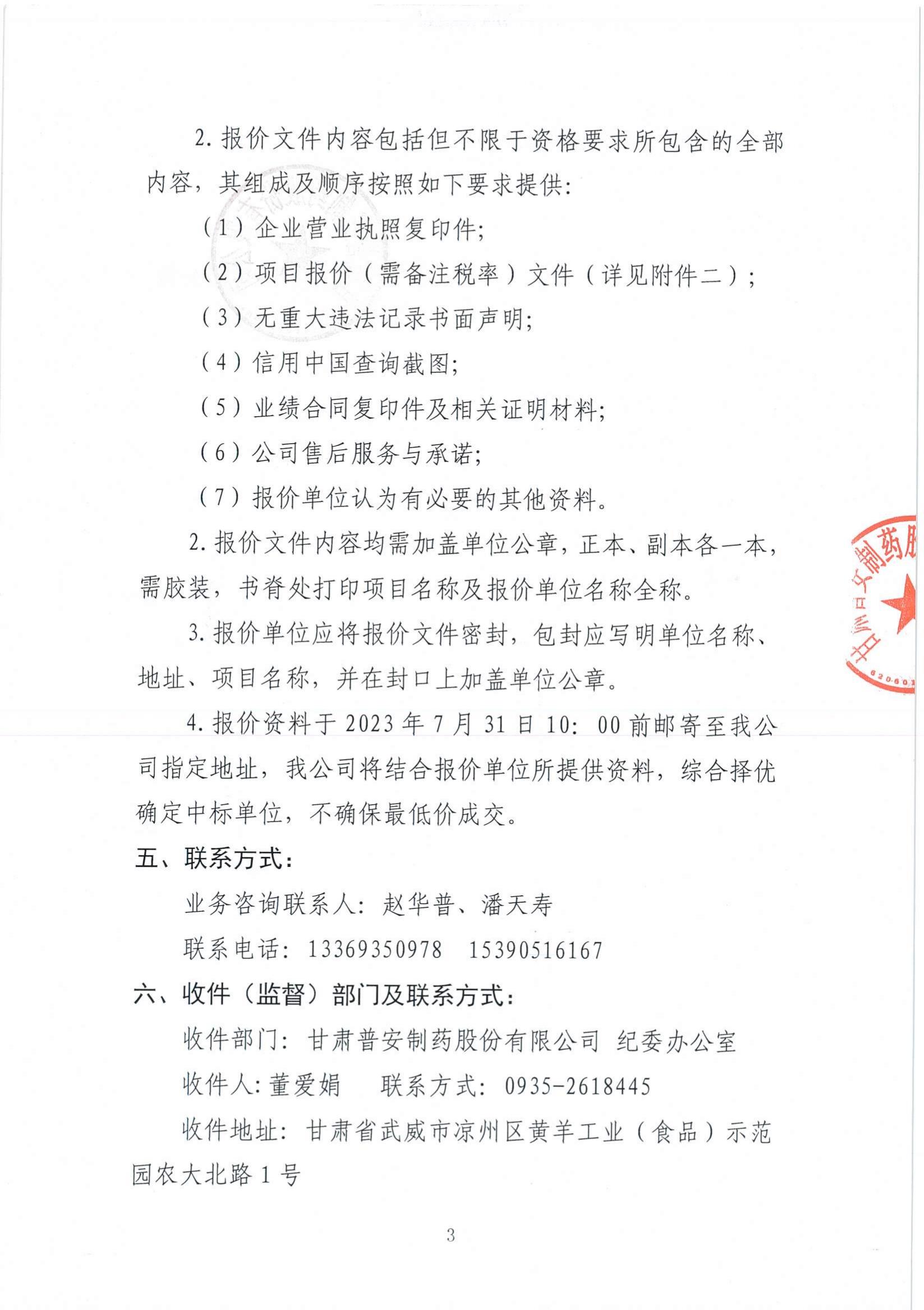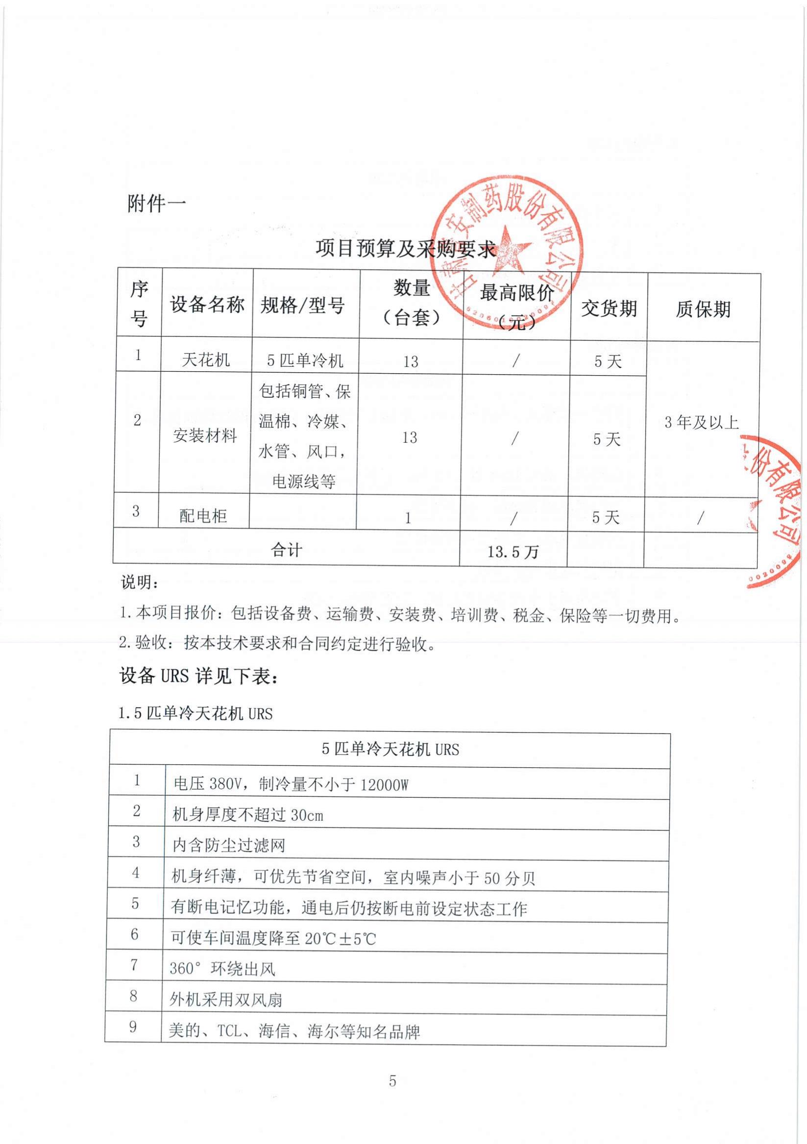 甘肅普安制藥股份有限公司外包車間空調采購安裝詢價公告