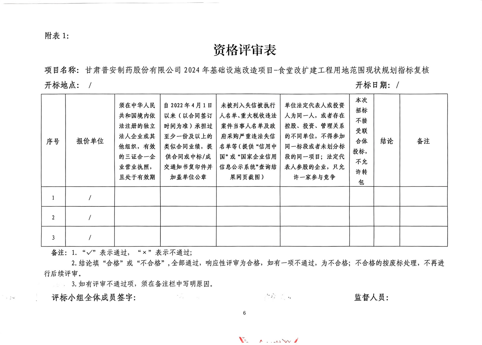 甘肅普安制藥股份有限公司2024年基礎設施改造項目-食堂改擴建工程用地范圍現狀規劃指標復核服務招標公告