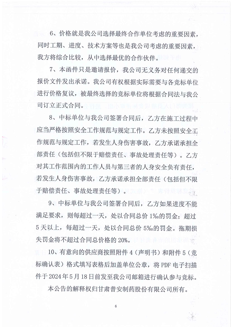 甘肅普安制藥股份有限公司2024年基礎(chǔ)設(shè)施改造項目-舊污水站設(shè)備設(shè)施及廠房拆除工程競爭性磋商公告