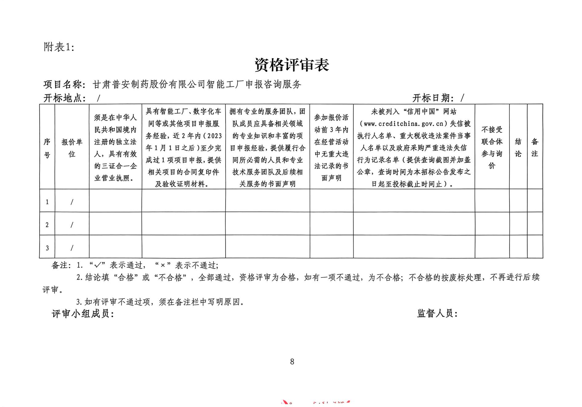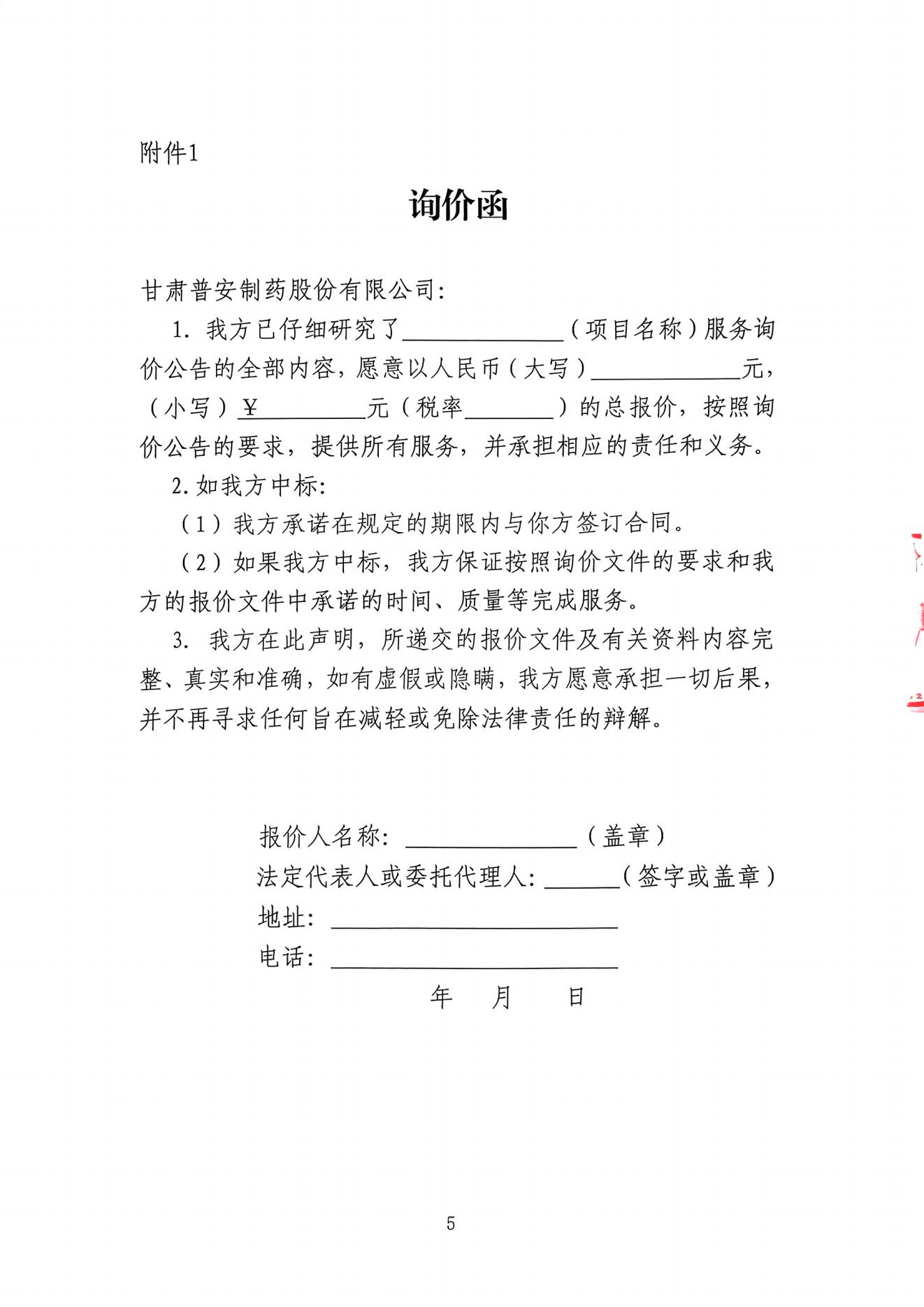 甘肅普安制藥股份有限公司智能工廠申報咨詢服務詢價公告